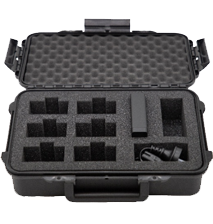 The flexible Klick Fast© wristband lets the wearer attach a Dustlight to the upper arm, forearm or wrist.